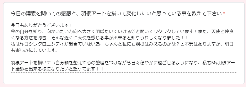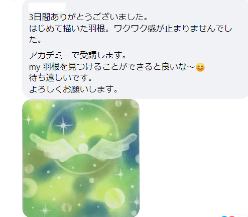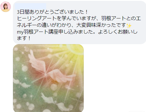 3日間講座を体験後になりますが、 羽根アートリーディングを抽選で3名様にプレゼントいたします。(35000円相当)