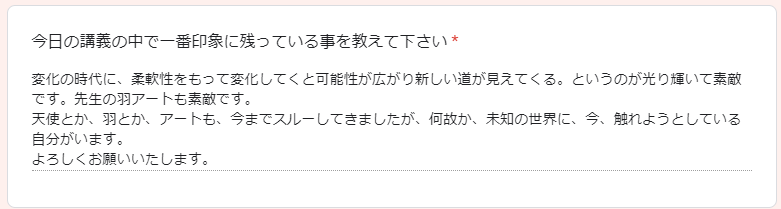 (3日間体験講座で描かれた「羽根アート」から、伝わってくる事をお伝えいたします。)